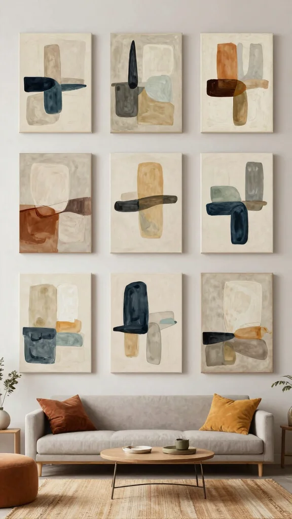 How Can I Arrange Abstract Wall Art Ideas to Create a Cohesive Living Room Decor Inspiration?
