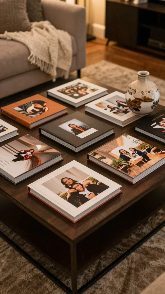 Lighting matters—soft LED lighting or a picture light can make stylish photo displays pop. Keep a couple of travel-themed albums visible and rotate seasons to keep the display fresh. This approach makes coffee table albums photo books feel personal without overwhelming the room.