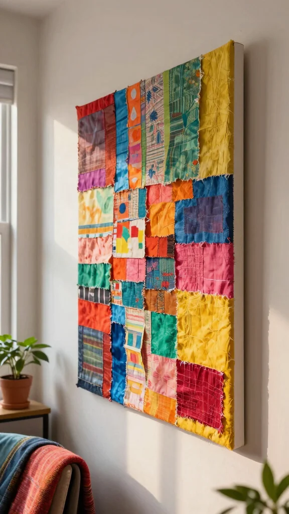 – Combine different textile pieces for a colorful collage.
