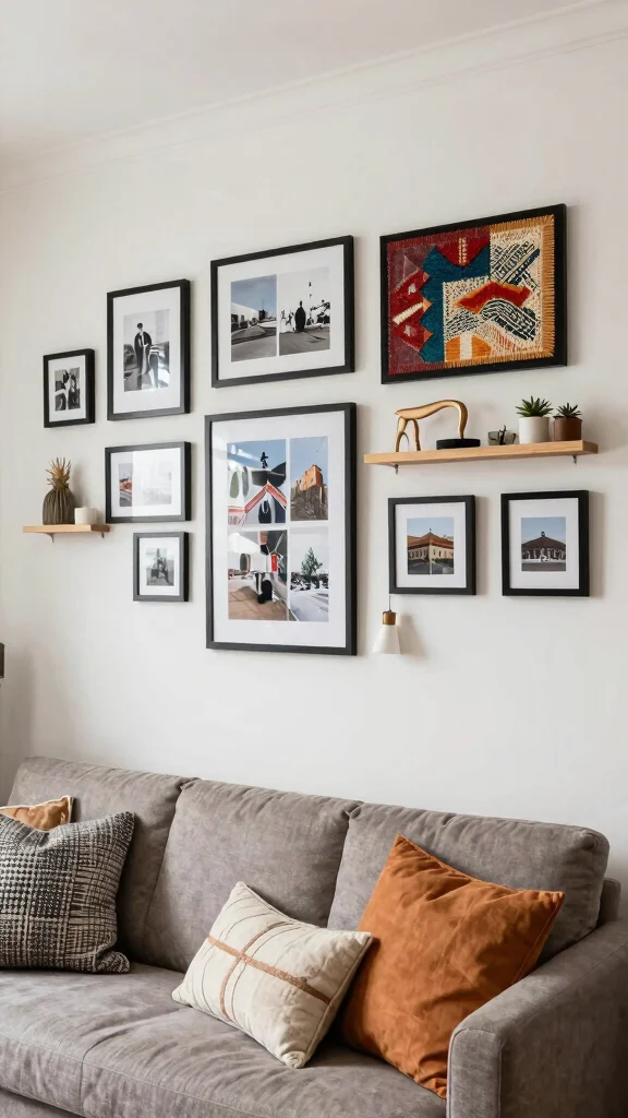 Layered wall art transforms a simple wall into a storytelling canvas, creating a delightful gallery feel in your apartment.