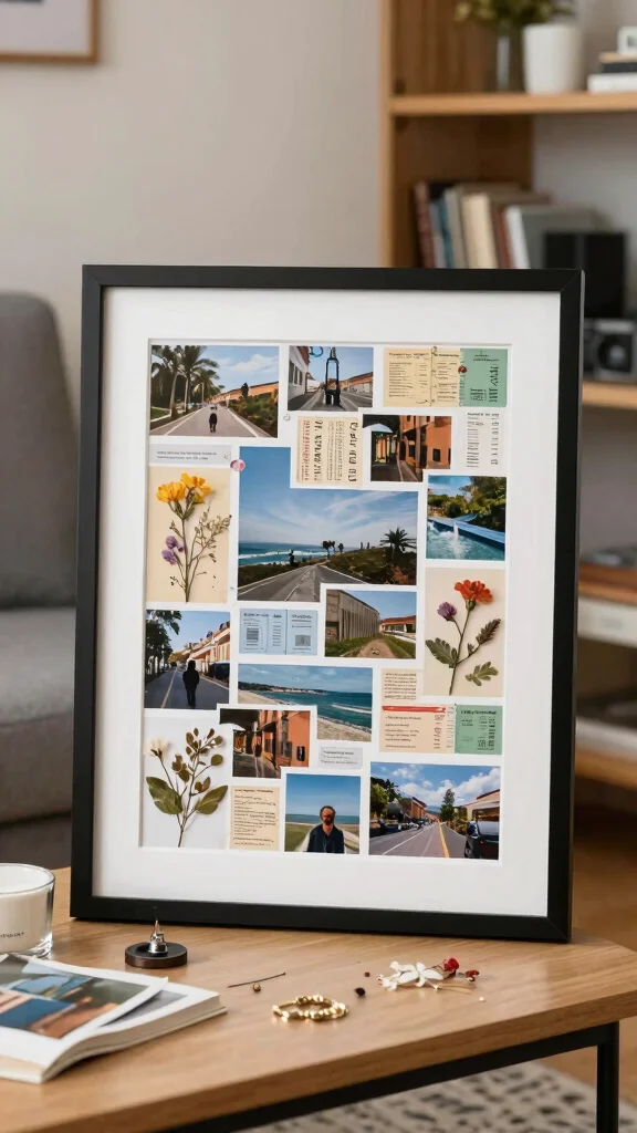Celebrate your journey through scrapbook art by combining personal memories into a beautiful collage. Use travel photos, ticket stubs, and pressed flowers, all arranged in a lovely frame. Opt for recycled paper for a sustainable background, making your art both personal and eco-friendly.