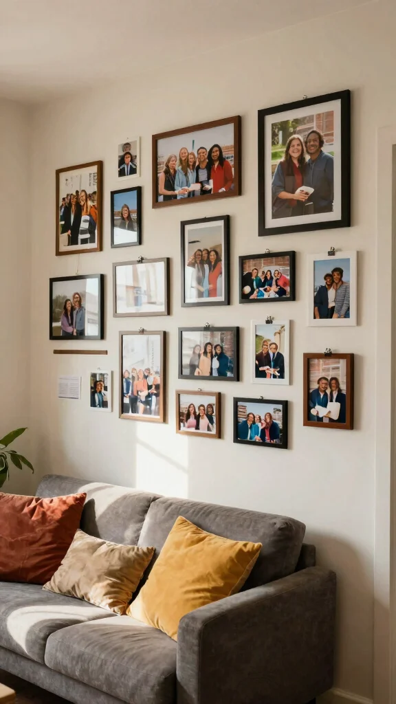 A photo wall beautifully personalizes your apartment, transforming it into a cozy home.