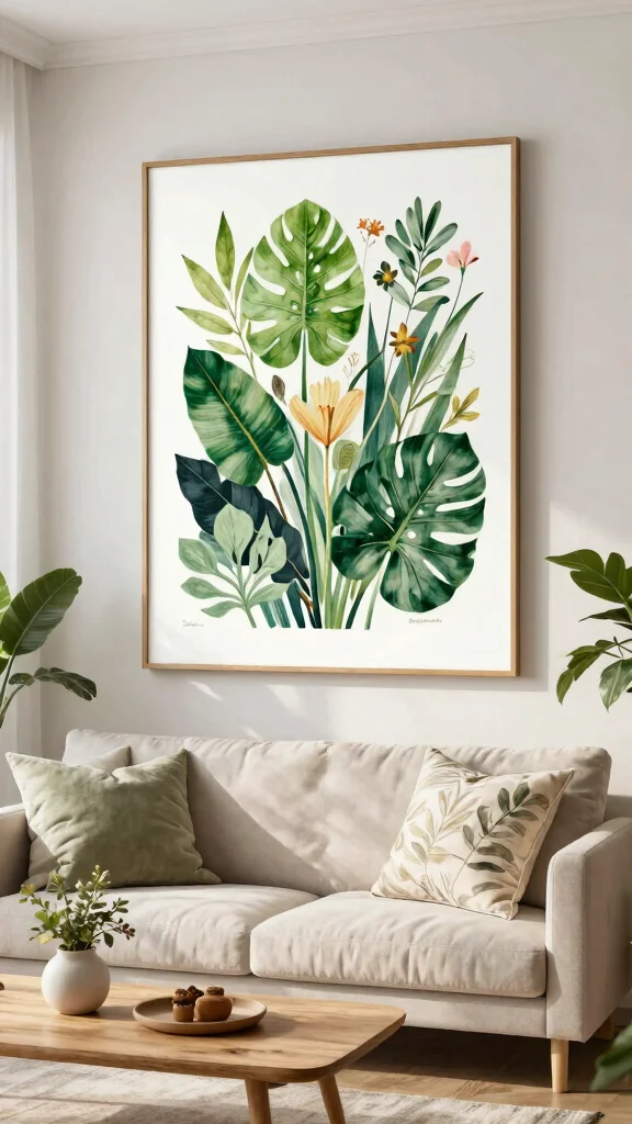 – Frame your art in natural materials like wood to emphasize the organic feel.