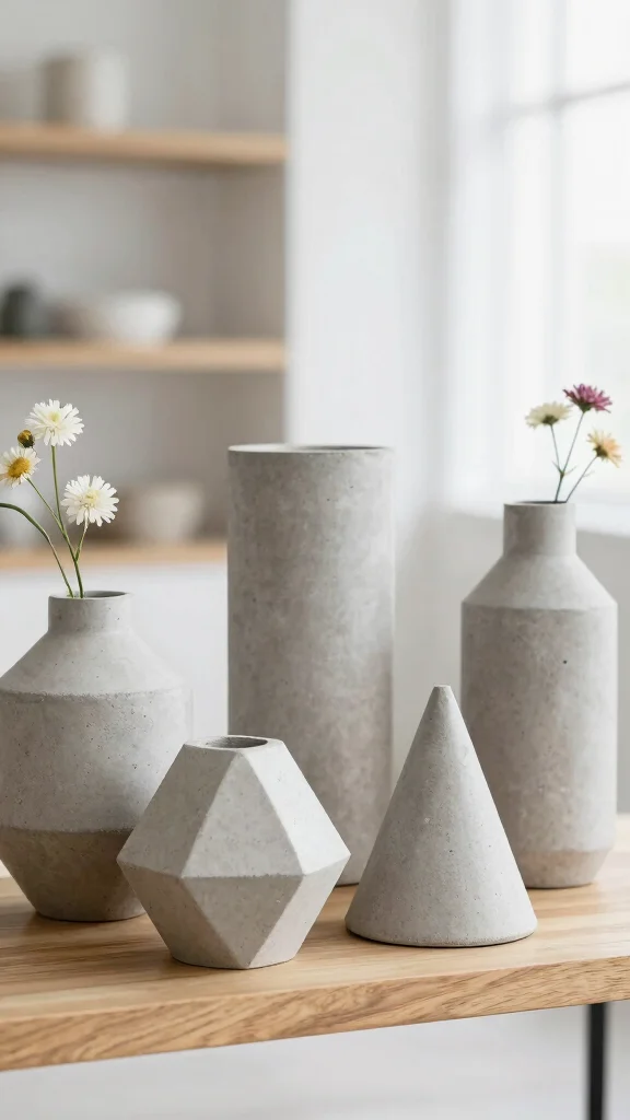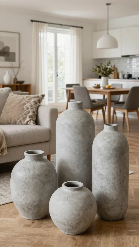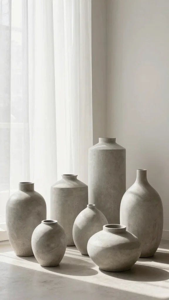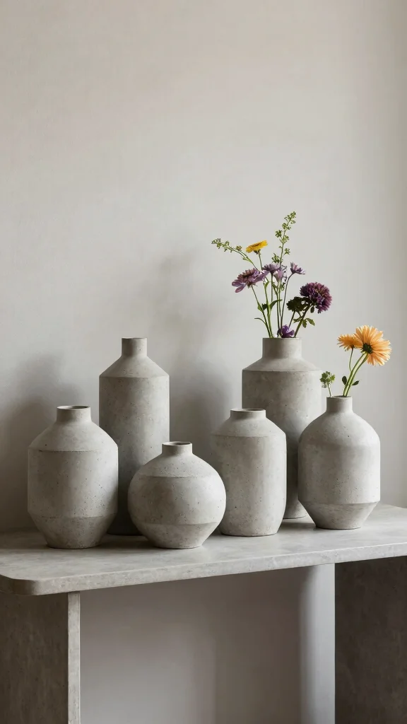 Textured concrete vases make spaces feel alive—mix rough and smooth finishes to ground a minimalist room. Pro tip: pair matte textures with sleek surfaces to create depth without clutter.
