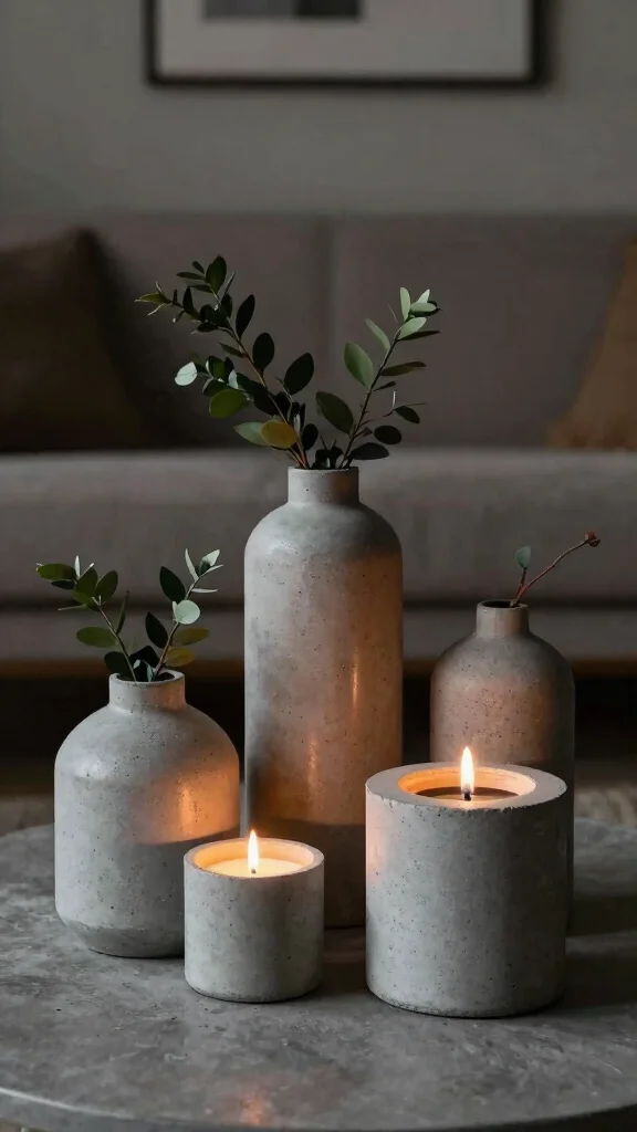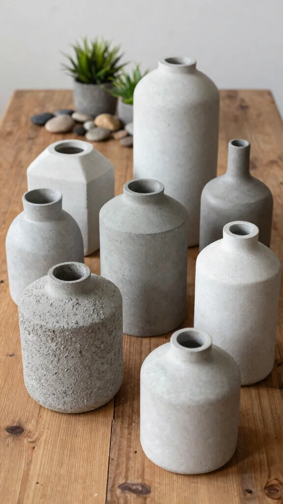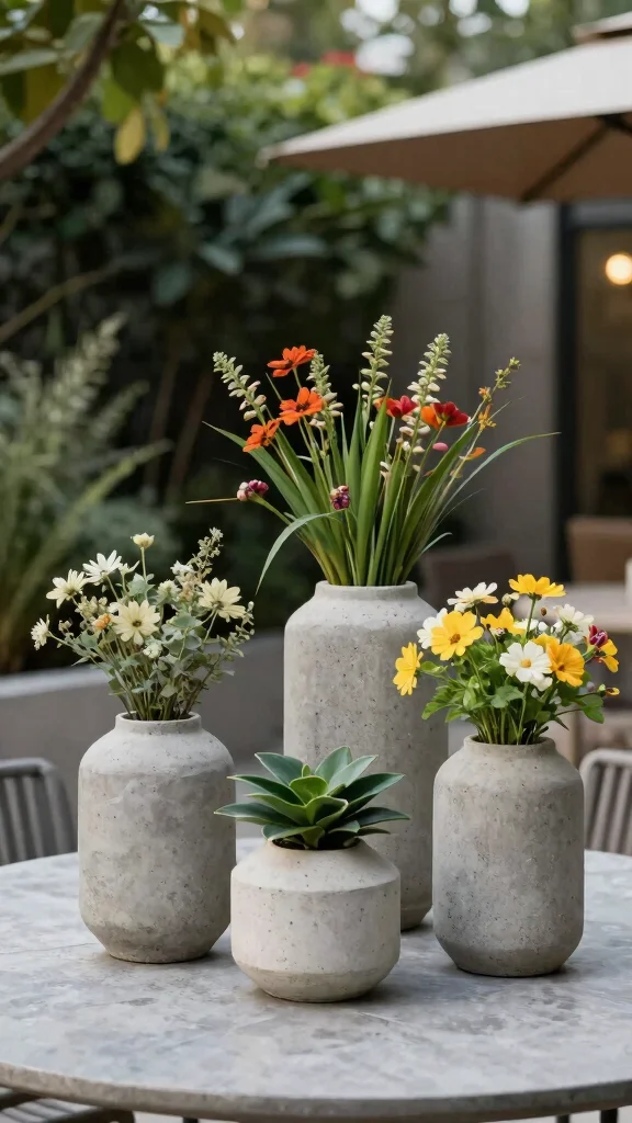 A centerpiece crafted from concrete vases can elevate your gatherings, making them perfect for hosting or festive occasions.