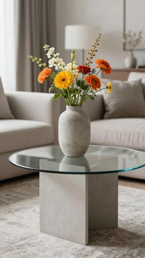 The combination of concrete and glass offers an elegant contrast that captivates attention. Using a concrete base with a glass top allows for a unique showcase of both the flowers and the vase, enhancing the beauty of each element.