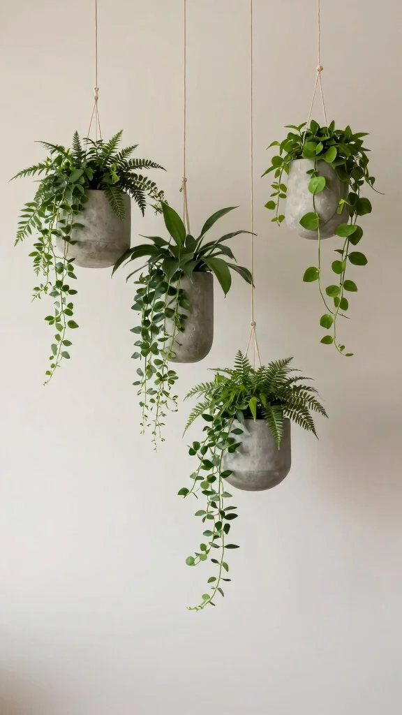 Fun fact: hanging concrete vases can free up floor space and add up to noticeable depth in small rooms. Pair them with trailing plants and staggered heights for a dynamic wall display that feels airy, sustainable, and totally Instagram-worthy.