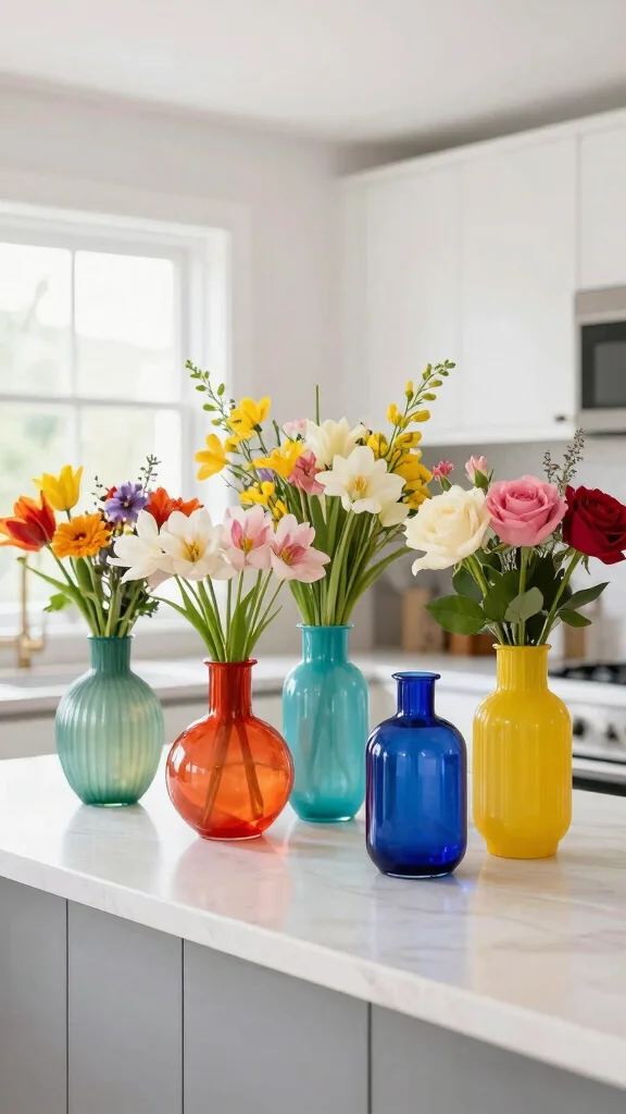 For spring, fill vases with tulips or daffodils and choose pastel colors for a light feel. In summer, opt for bright blooms in white or light-hued vases for contrast. For fall, utilize earthy-toned vases filled with sunflowers or dried branches to evoke cozy autumn vibes.
