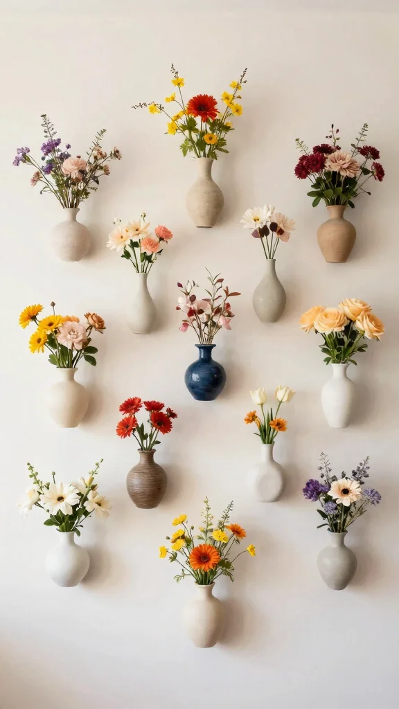 To style wall-mounted vases, arrange them in a geometric pattern for a striking visual impact. Mixing different styles and sizes creates an eclectic look, while using trailing plants can transform your display into a dynamic living wall.