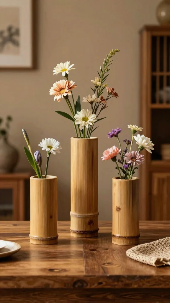 Bamboo vases provide a refreshing aesthetic, adding an eco-friendly element that enhances your home’s character.