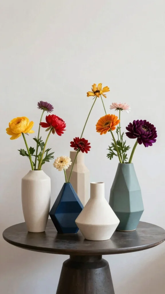 For styling geometric vases, cluster them together on a dining table or mantel to create depth and intrigue. Pairing them with flowers that echo their shapes creates a cohesive look, while contrasting colors can make a bold statement in your space.