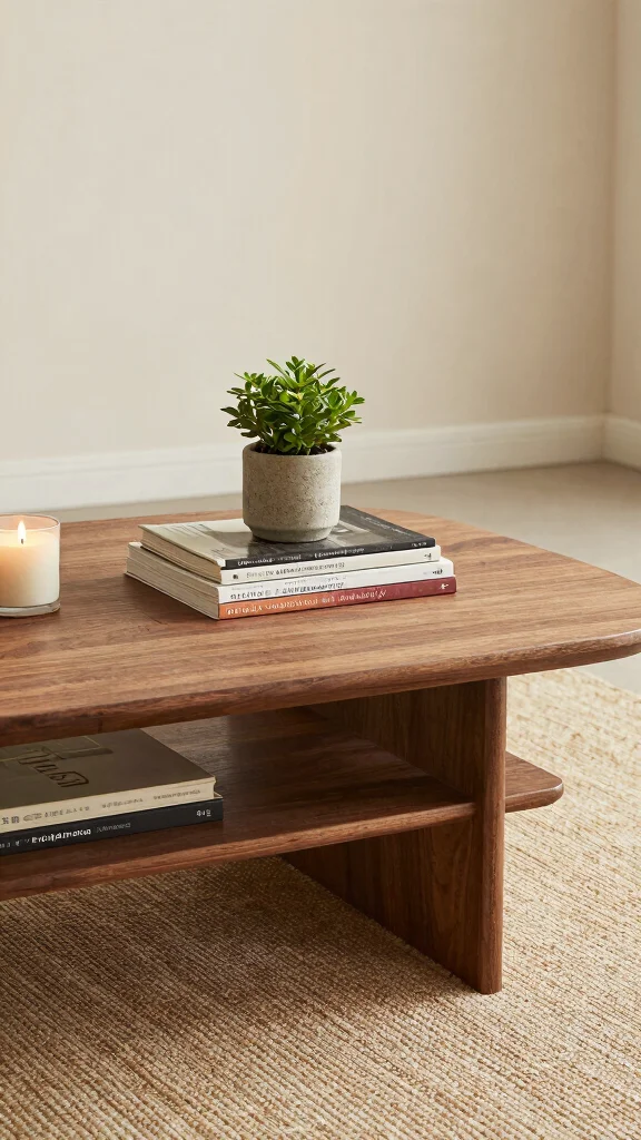 Choose a small, lightweight tray to hide extras and rotate titles monthly to keep it fresh. Store overflow on a bookshelf or ottoman storage, so the table stays uncluttered. Use a single feature item—like a geometric sculpture or a plant—paired with a tidy stack of books for warmth in living room decor and decorating with coffee table books.