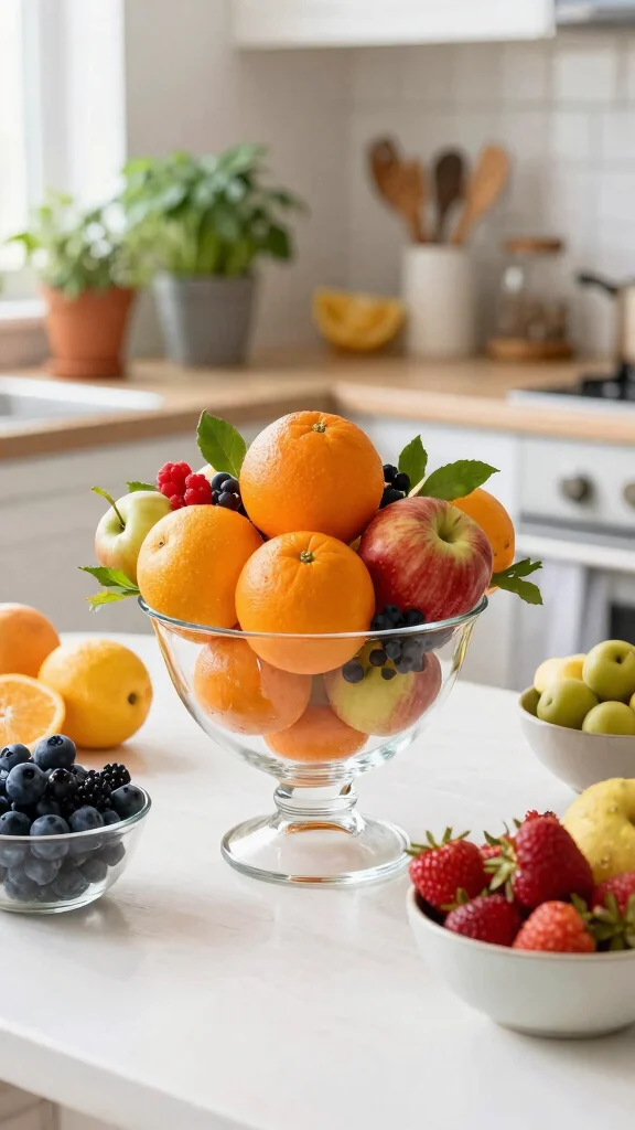 This colorful display not only enhances your decor but also doubles as a tasty treat for guests! For an eye-catching arrangement, start with larger fruits at the bottom and layer smaller ones on top for added depth and visual appeal.