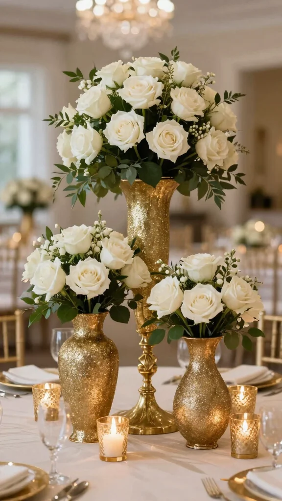 – Pair gold glitter vases with white flowers for a stunning contrast