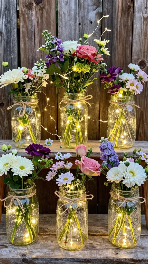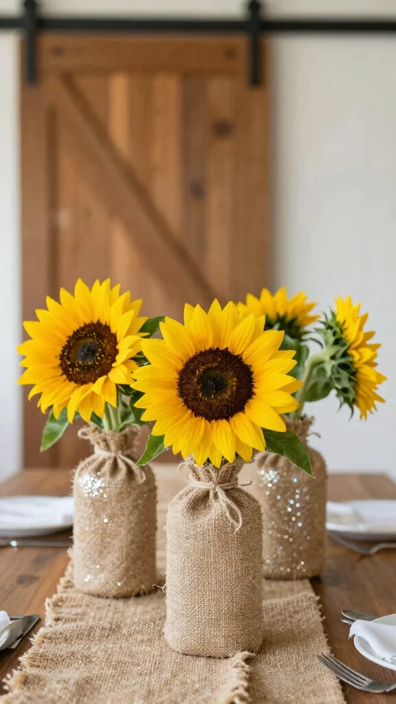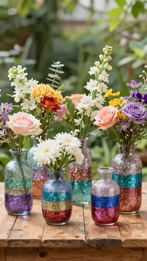 For a charming and informal option, consider using jars as glitter vases. This creative DIY project is easy to execute and can be a fun activity for kids or crafting parties. Picture these delightful jars filled with flowers or fairy lights, adding a touch of whimsy to your decor.