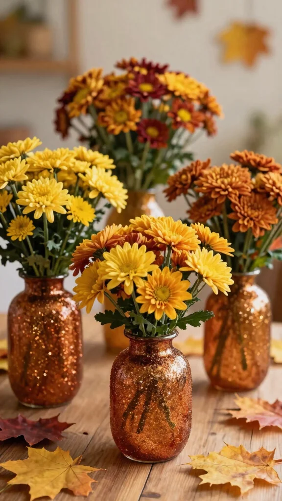Embrace the changing seasons by creating seasonal glitter vases, allowing your decor to adapt to holiday themes and seasonal colors. This idea adds freshness to your space, reflecting the beauty of each time of year. Imagine vibrant orange and black vases for Halloween or soft pastels for spring, transforming your decor effortlessly.