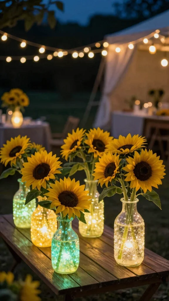 To create glow-in-the-dark glitter vases, use glow-in-the-dark glitter, following the product instructions for application. This technique transforms ordinary vases into enchanting pieces that set the mood for nighttime events and celebrations.