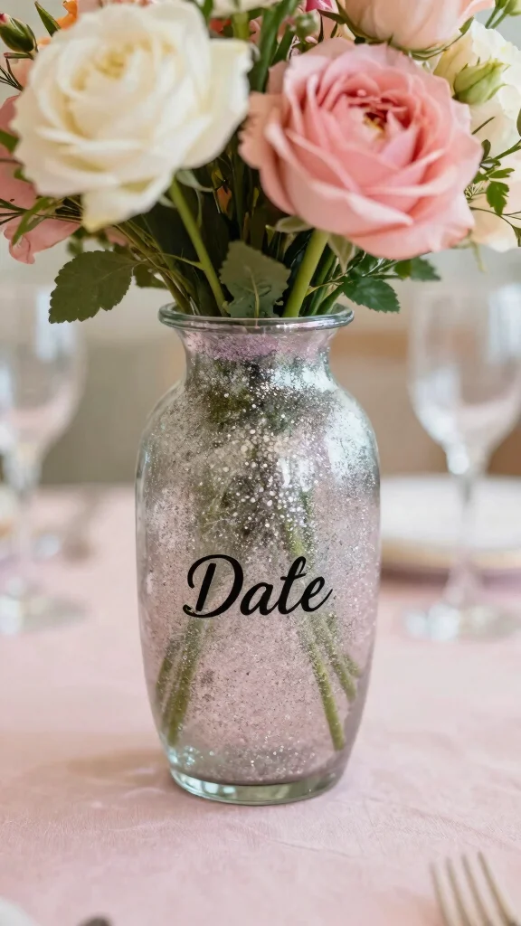 Showcase your creativity by personalizing glitter vases with names, dates, or quotes. This unique idea is perfect for weddings or special occasions, making each piece a treasured keepsake. Imagine these customized vases gracing your event, adding a heartfelt touch that guests will remember.