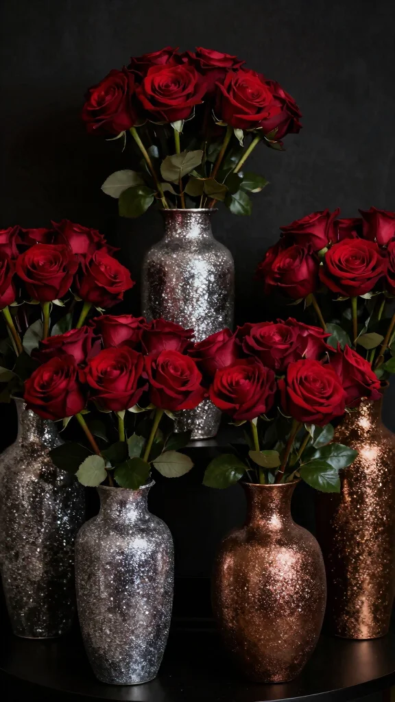 Add an edgy touch to your decor with metallic glitter vases, perfect for those who love a modern aesthetic. The reflective quality of metallic glitter catches the light beautifully, creating a stunning visual effect. Imagine these striking vases standing out against dark florals, adding a bold statement to your arrangement.