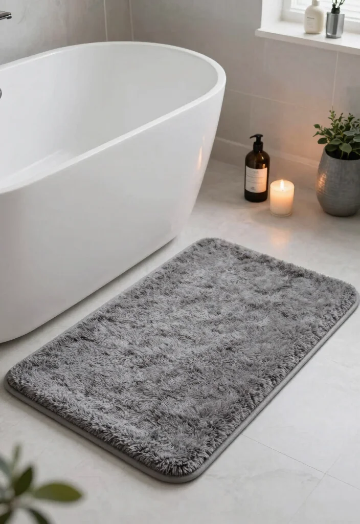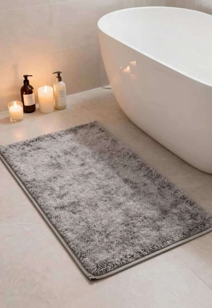 – Contrast textures by pairing a plush mat with sleek tiles.
