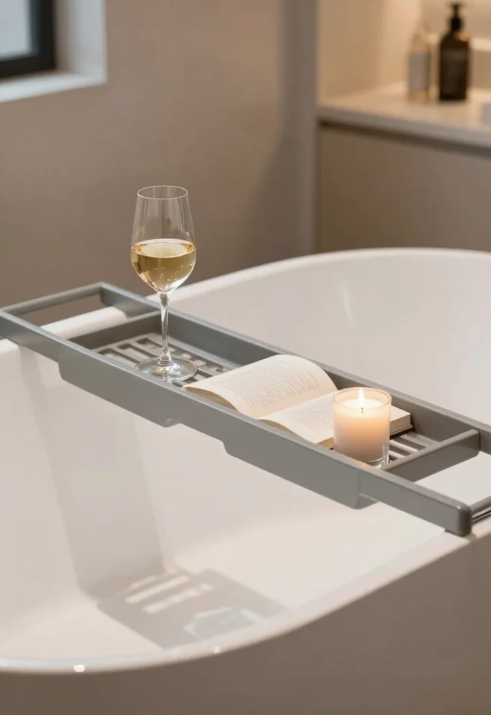 A grey bath caddy not only adds convenience but also elevates your bathing experience, making it a personal retreat.