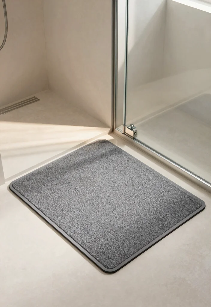 A grey shower mat enhances both safety and style, contributing to a well-designed bathroom space.