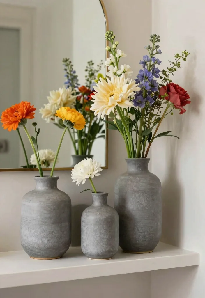 Decorative grey vases not only enhance your bathroom decor but also introduce a lively element that breathes life into the space.