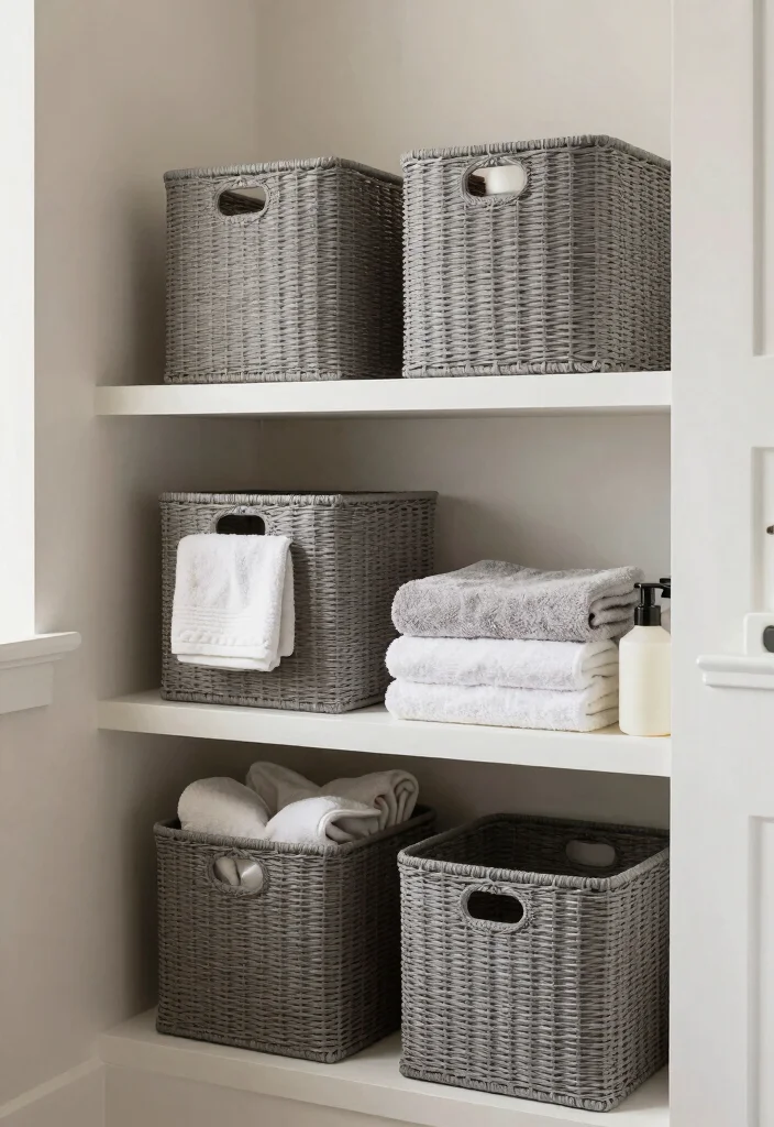 Grey storage baskets not only help keep your bathroom tidy but also contribute to a sophisticated aesthetic that enhances your overall decor.