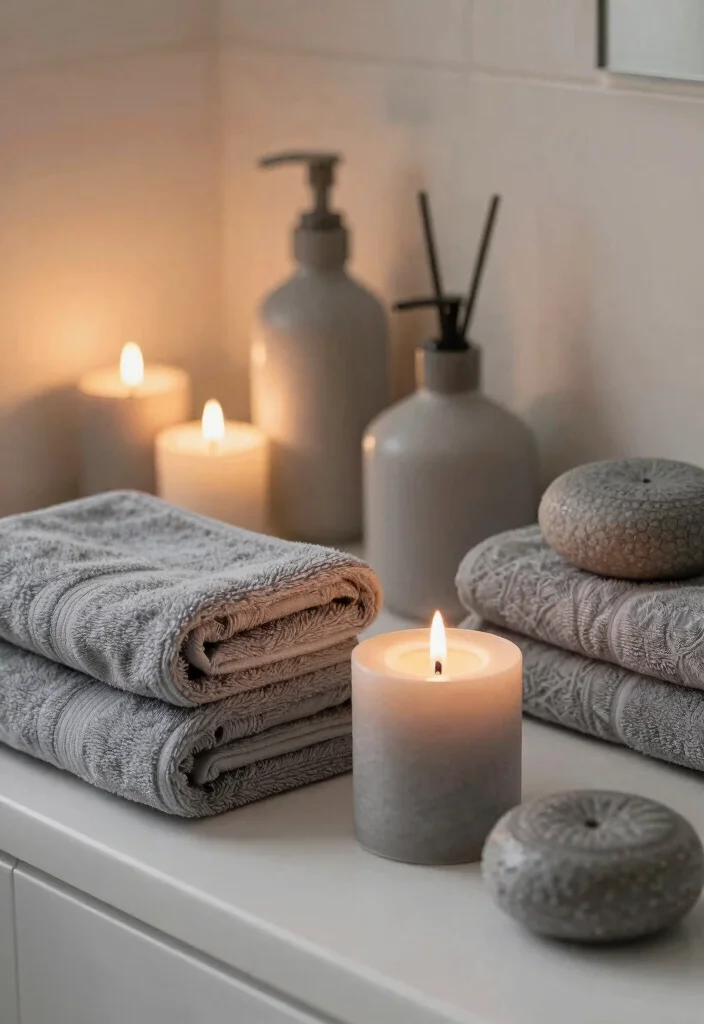 – Stylish Grey Accessories: Discover how grey towels, mats, and storage solutions can add elegance to your bathroom decor.