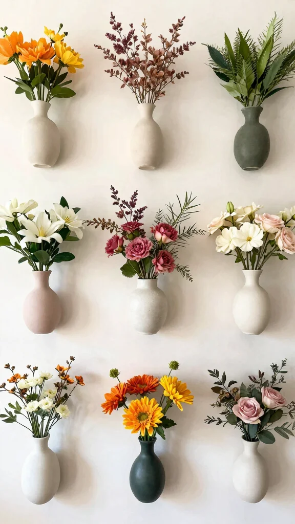 Rotating your wall vases seasonally is a delightful way to keep your decor fresh and engaging. Choose flowers that reflect the season—pastels for spring, vibrant hues for summer, warm tones for fall, and cool whites for winter. This practice not only livens up your space but also allows for creative expression.