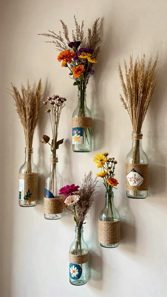 Fun fact: repurposing old bottles into hanging wall vases can cut decor costs by up to 50%. It also adds a personal, eco-friendly touch to your urban minimalist space.