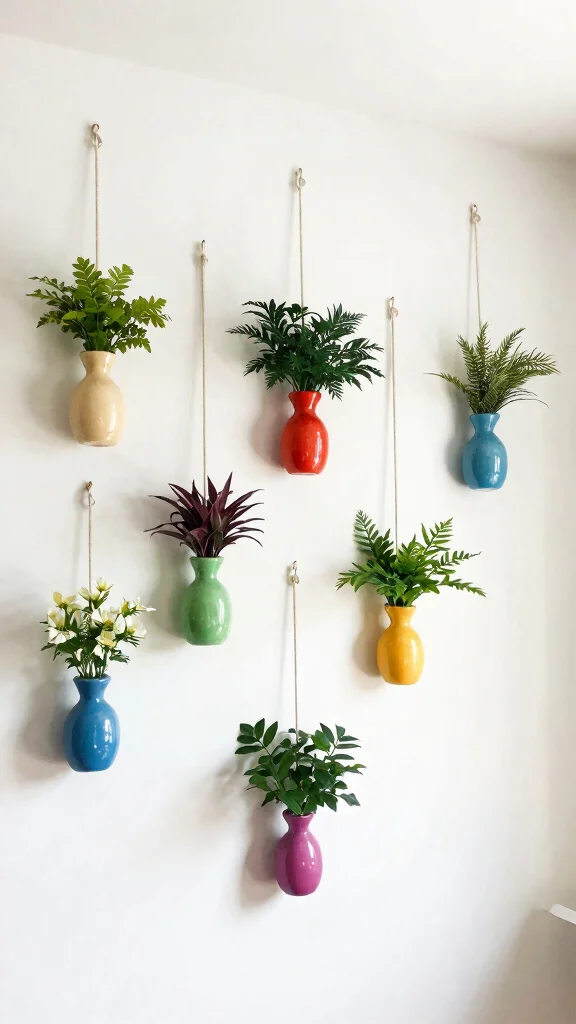 What are stylish, affordable ideas to use hanging wall vases as modern home accents and apartment wall art?