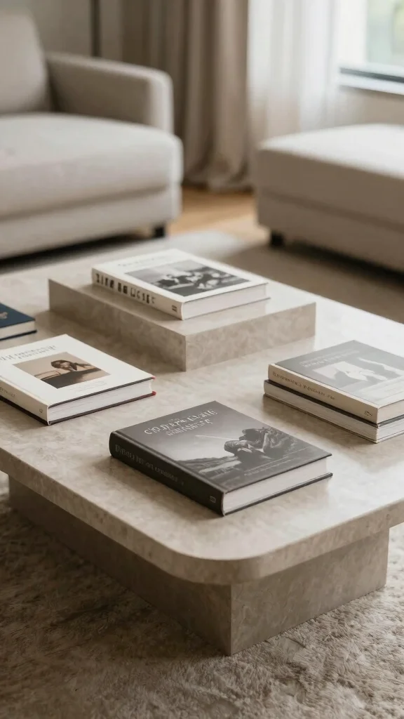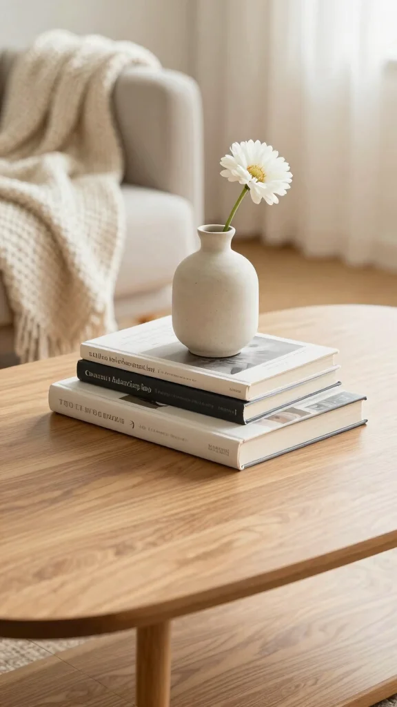 Choose colors and textures that harmonize with the room: two or three book cover colors, plus a contrasting but complementary accent. Mix matte and glossy surfaces, and vary heights so the arrangement moves the eye. Select titles with visually interesting spines or covers, and consider facing out one or two books for added impact. With these moves you’ll nail minimalist coffee table aesthetics and implement solid interior design tips for home decor ideas.