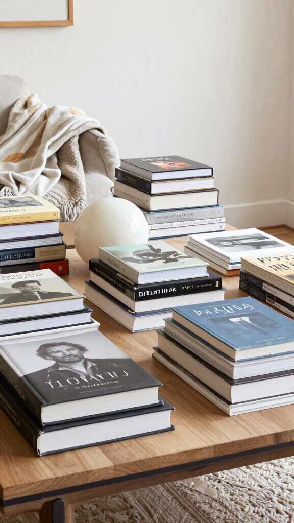 Pro Tip: Don’t hesitate to change your display regularly! Keeping things fresh can inspire you and make your space more enjoyable. Plus, it allows you to showcase different books throughout the year, keeping your coffee table a focal point in your living space.