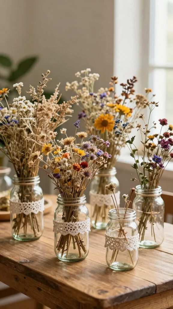To truly maximize their potential, consider pairing them with dried flowers or fresh blossoms for a natural vibe. These jars not only add personality but also promote sustainability, making them a smart choice for eco-conscious decorators.