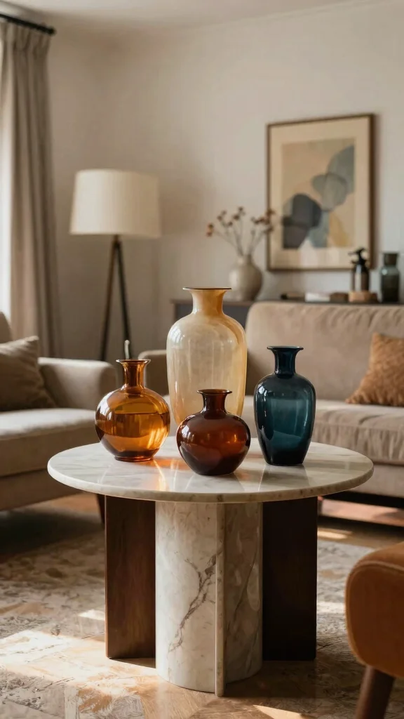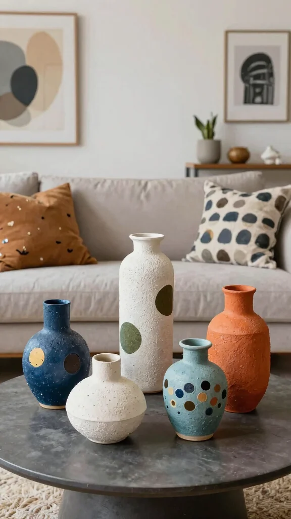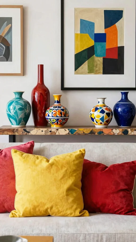Select bold, colorful ceramic vases to create focal points that enhance your living room’s aesthetic.