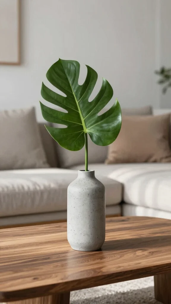 Incorporate minimalist concrete vases to add a modern and stylish touch to your living room décor.