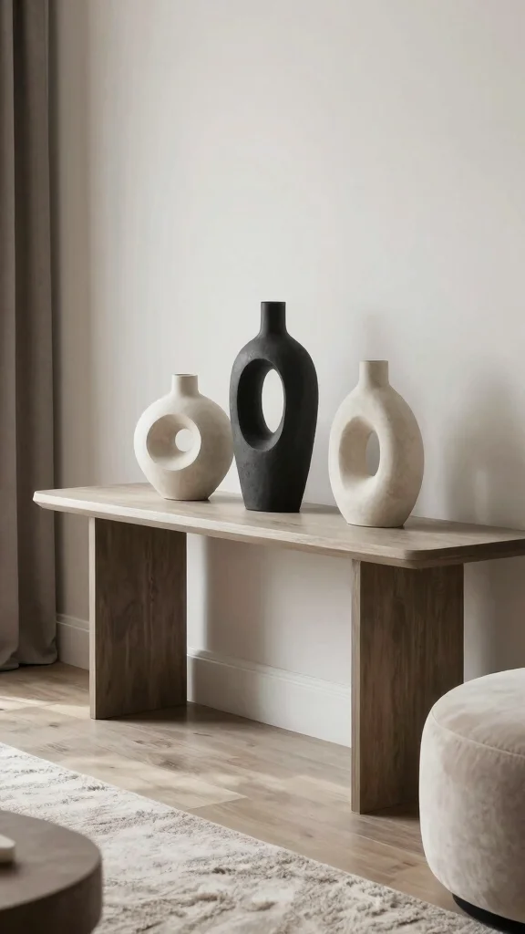 Incorporating sculptural vases into your living room adds drama and creativity, elevating your overall design.