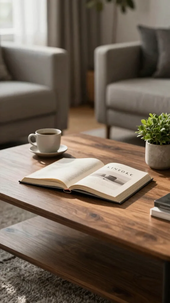 Adjust for ultra-tight spaces by using a wall-mounted shelf or a shallow side table to free the main surface while still showcasing decorative coffee table books as focal points. In compact living room decor, less is more—curate with intention.