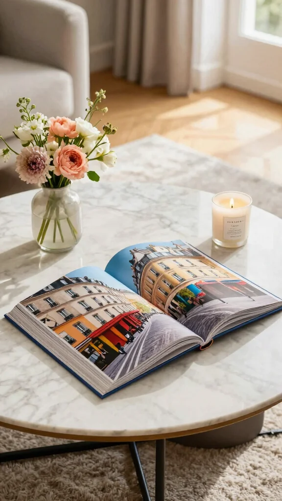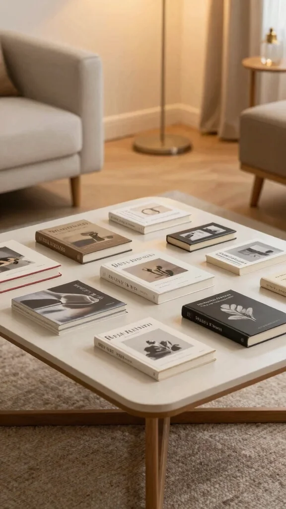 Prefer durable decorative coffee table books with sturdy spines you can stack or flip through, and rotate titles seasonally to keep the look fresh while staying true to a minimalist home accessories vibe.