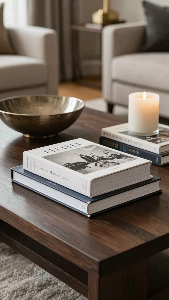 Fun fact: an oversized stack of coffee-table books can boost your table’s visual height by up to 25%, instantly becoming a centerpiece. Layer smaller titles for depth, then add a candle or bowl to invite guests to browse your stacked books on coffee table.