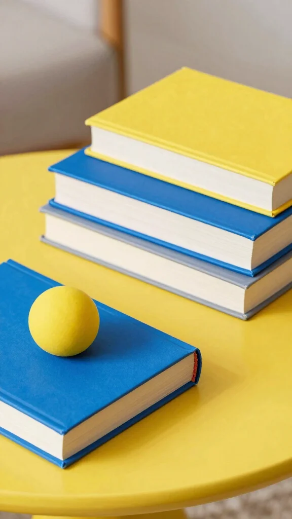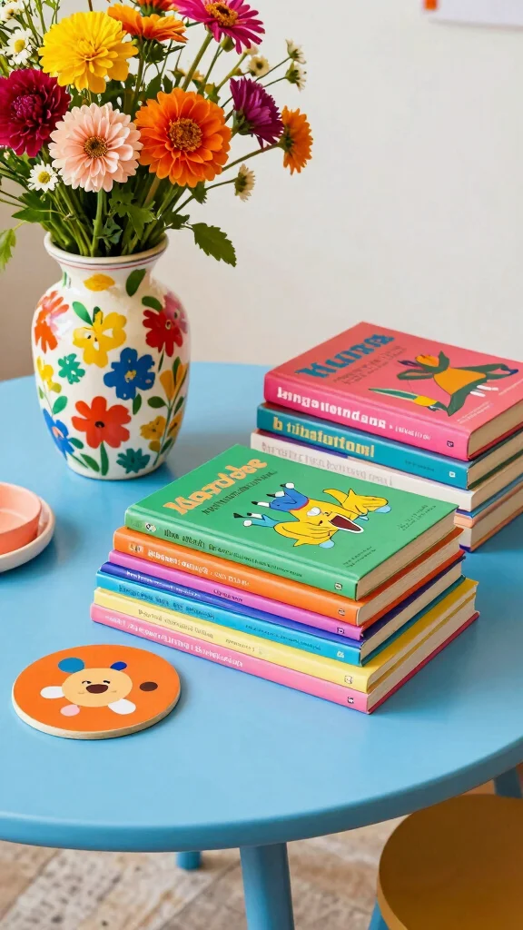 Add a vibrant splash of color to your coffee table with bold, brightly colored books. Arrange them to showcase their eye-catching covers, creating a lively statement that reflects your personal style. To enhance this spirited palette, integrate decor items echoing these hues, such as colorful coasters or a vibrant vase.