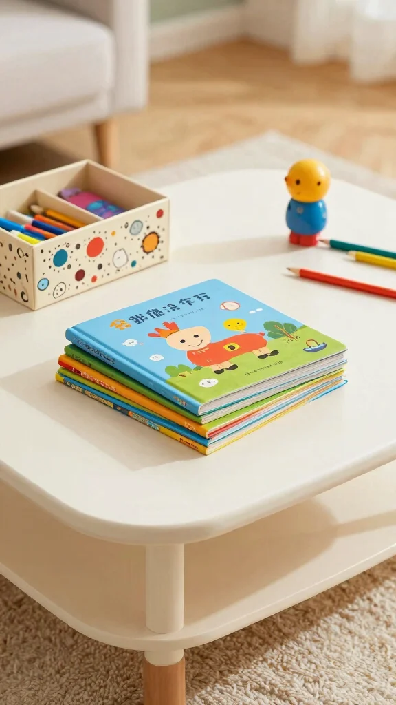 If you have children, consider dedicating a portion of your coffee table to their favorite books. Stack colorful and engaging children’s books, intermixed with playful decor elements like toys or art supplies. This arrangement creates an inviting space for little ones while keeping everything organized.