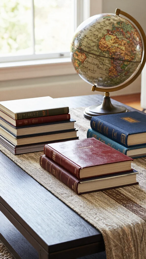 Showcase your passion for travel with a collection of inspiring travel books. Stack volumes that feature stunning destinations, diverse cultures, or culinary adventures to spark wanderlust in anyone who visits. To enhance the travel theme, include decorative accents like globes, maps, or souvenirs from your journeys.