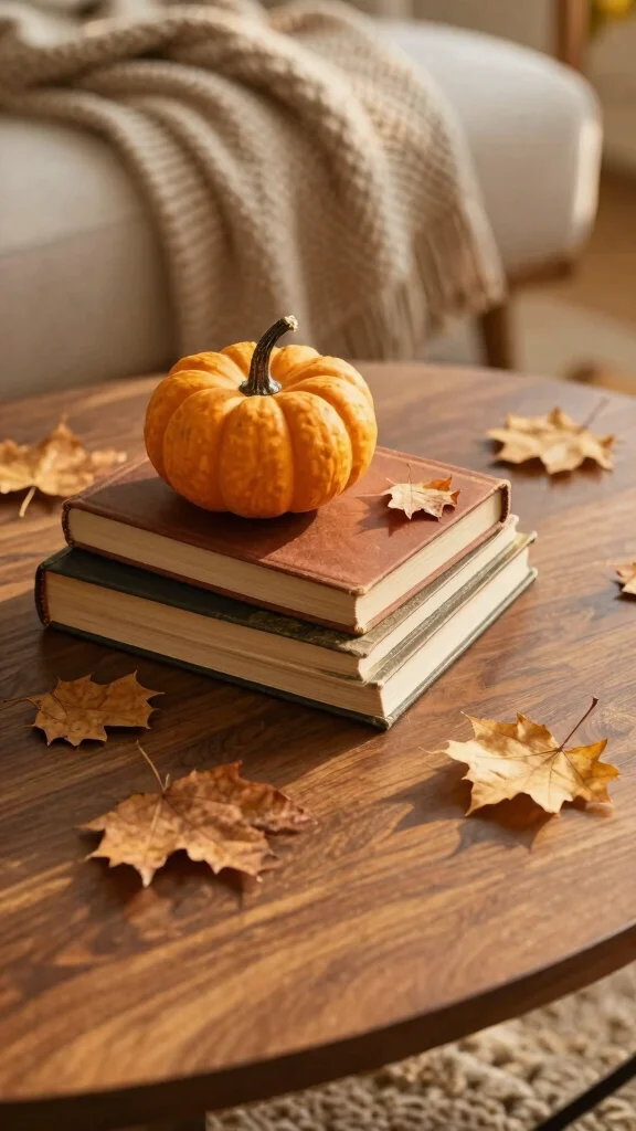 To complete the look, incorporate a few small plants or candles around the stack, softening the edges and enhancing the cozy vibe.