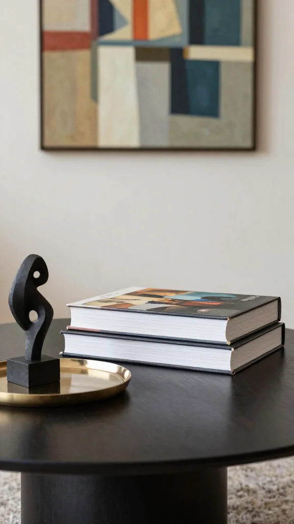 To elevate the display, add a small framed piece of art or a unique sculpture next to the book stack. Using a decorative tray to hold your art books can create a distinct section on your coffee table, emphasizing both style and organization.