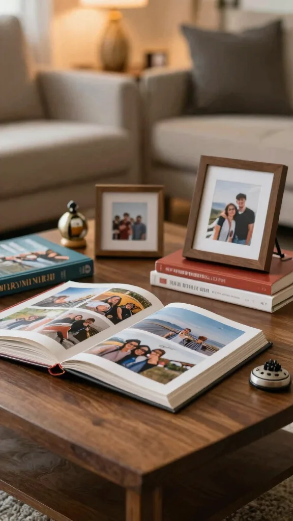 Transform your coffee table into a personal reflection of who you are by incorporating cherished photo albums or books that highlight your travels and interests. Add framed photos of loved ones or memorable moments to create a warm connection with your guests, inviting them to engage with your stories.