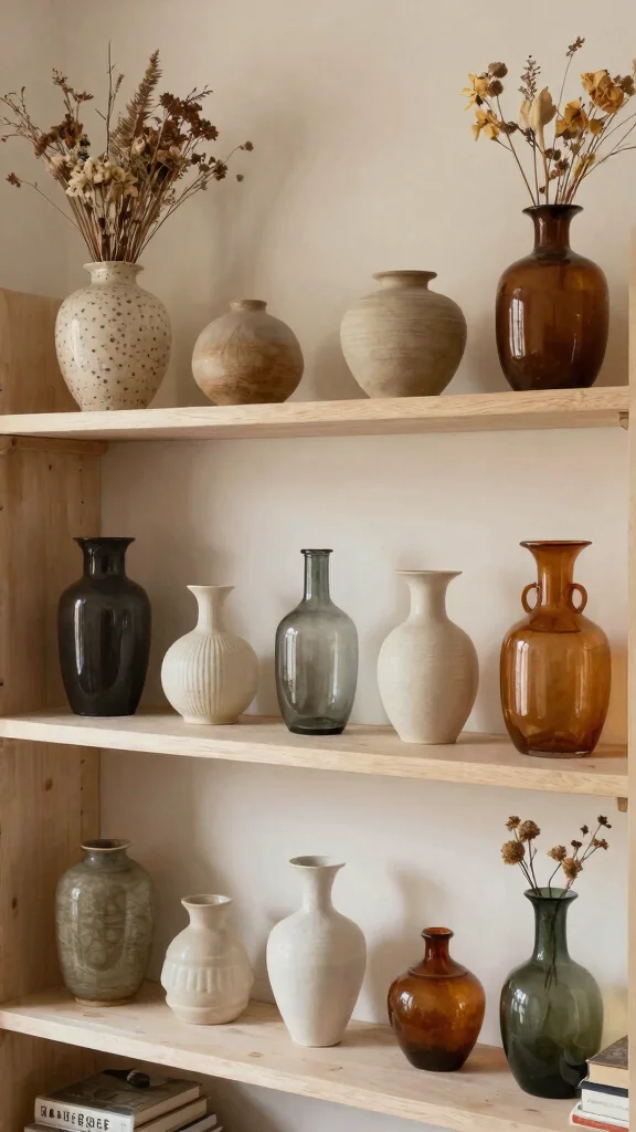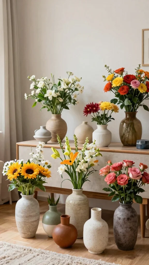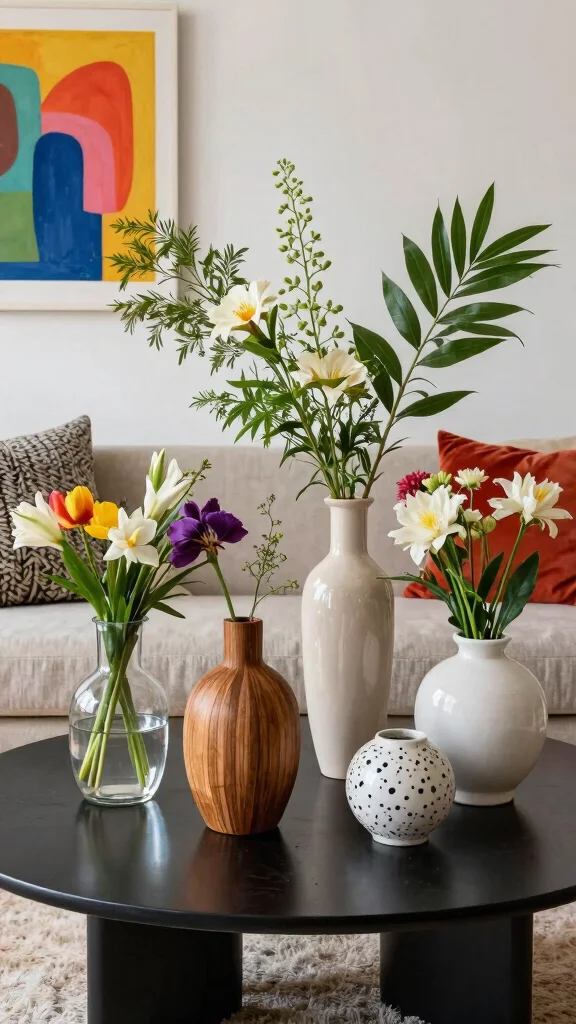 Combining various styles of vases creates a stunning visual display that reflects your unique taste. Mixing materials like glass, ceramic, wood, and fabric allows for a layered look that adds depth and interest to your decor. Imagine an arrangement of vases in different heights and colors, creating an eye-catching focal point in your living space.