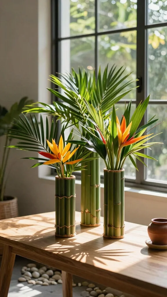 Bamboo vases bring a unique organic aesthetic to your decor, thanks to their natural textures and lightweight design. Perfect for showcasing tropical flowers or lush greenery, these vases help create a tranquil indoor oasis that feels connected to nature. Their sustainable nature adds an eco-friendly touch to your home, making them both stylish and responsible.