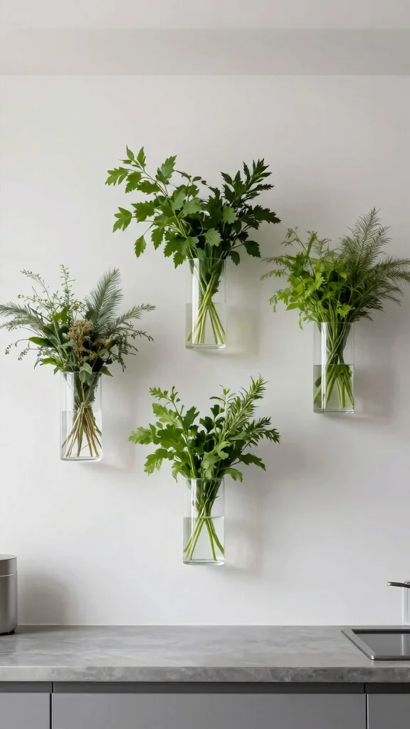 Floating vases in the kitchen turned my herb idea into a little sculpture; space feels bigger, herbs stay closer, and clean lines stay calm. Pro tip: use clear acrylic or glass so light streams through, and pair with simple wall art for a cohesive look.